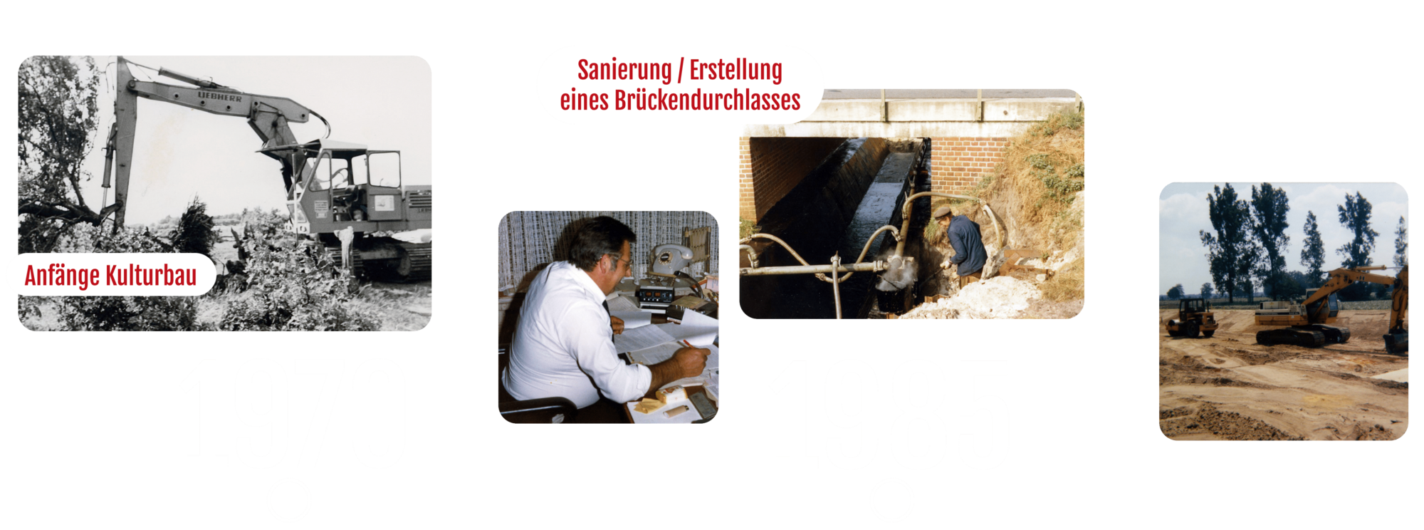 Johannes den Betrieb und baute ihn mit einem kleinen Team weiter aus. Als die Flurbereinigung nach und nach auslief, stellte man sich neu auf: Erste Projekte im Kanalbau folgten, ohne die landwirtschaftlichen Wurzeln ganz zu verlassen. Mit wachsender Auftragslage wuchs auch das Team, das schließlich als GmbH neu firmierte.